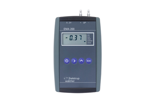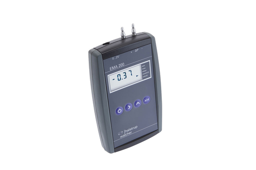 Das tragbare, batteriegespeiste Digital-Manometer EMA 200 ist ein präzises Messgerät zur Messung von positivem und negativem Differenzdruck. Durch seine einfache Handhabung eignet sich das EMA 200 für Kundendienst- und Wartungsarbeiten, z. B. an Heizungs-, Lüftungs- und Klimaanlagen sowie zur Messung des Kaminzuges und zur Filterüberwachung. Darüber hinaus eignet sich das Gerät zur Messung von Strömungsgeschwindigkeiten und Bestimmung von Volumenstrom.